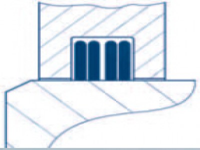 用于滾動(dòng)及滑動(dòng)軸承的潤(rùn)滑油密封,特別在密封要求很高的時(shí)候,如果抹上油脂,能夠用于防潤(rùn)滑油泄漏及阻止灰塵、 雜質(zhì)、濺水的侵入。“FK 6”疊片密封環(huán)能夠提供均勻的徑向張力。相對(duì)于“FK 3”它在圓周上沒(méi)有間隙。組合式疊片密封環(huán)FK 6-ISKD由于增加了溝槽底部的密封,迷宮回路的增加,其密封效果也更好。